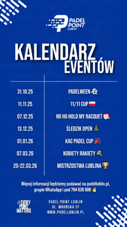 Poniżej znajdziesz listę najbliższych turniejów w Padel Point Lublin